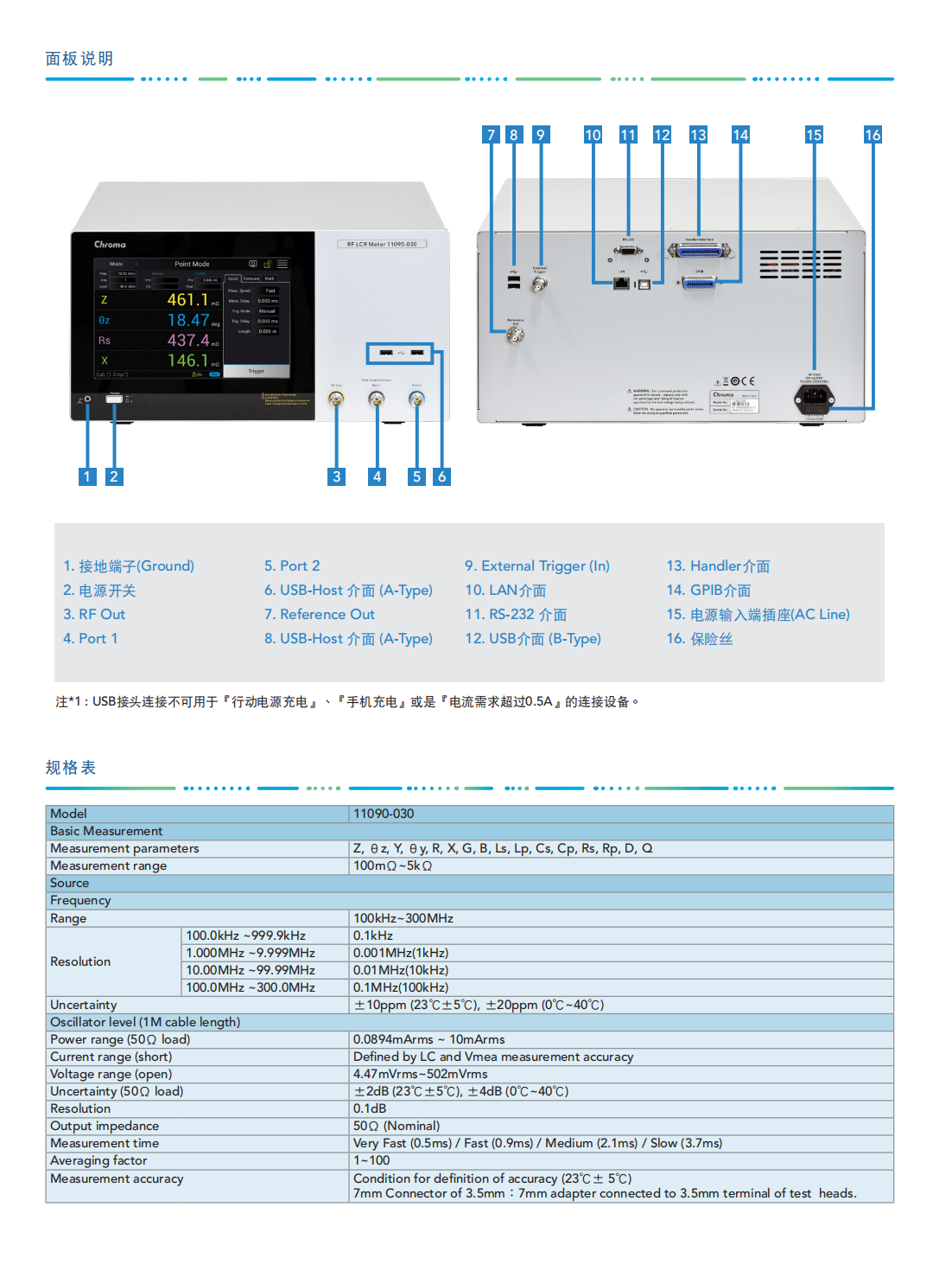 Chroma 11090-030射频LCR表为一提供贴片电感及射频滤波器等被动元件高频量测评估解决方案。