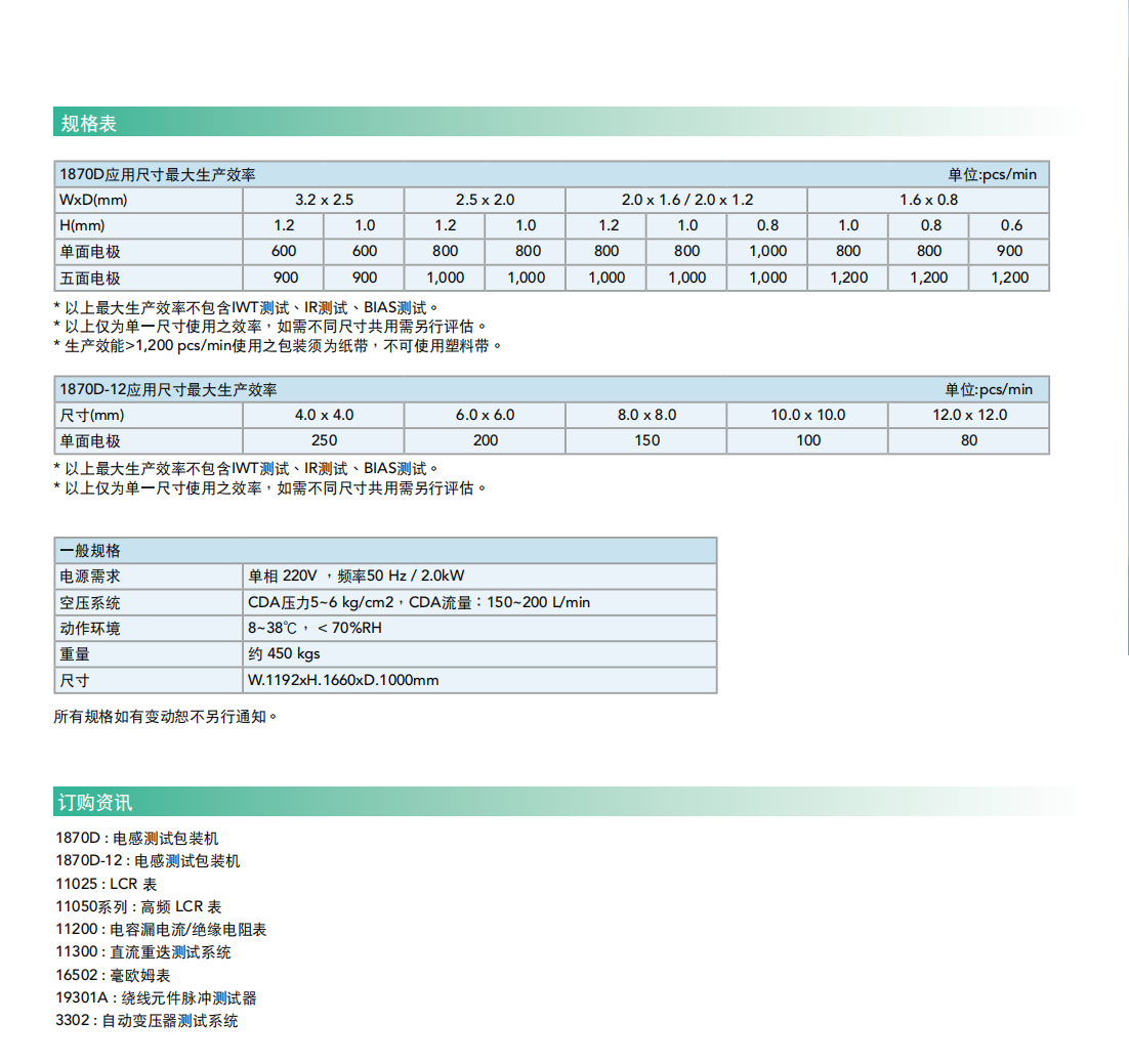名  称:电感测试包装机MODEL 1870D系列