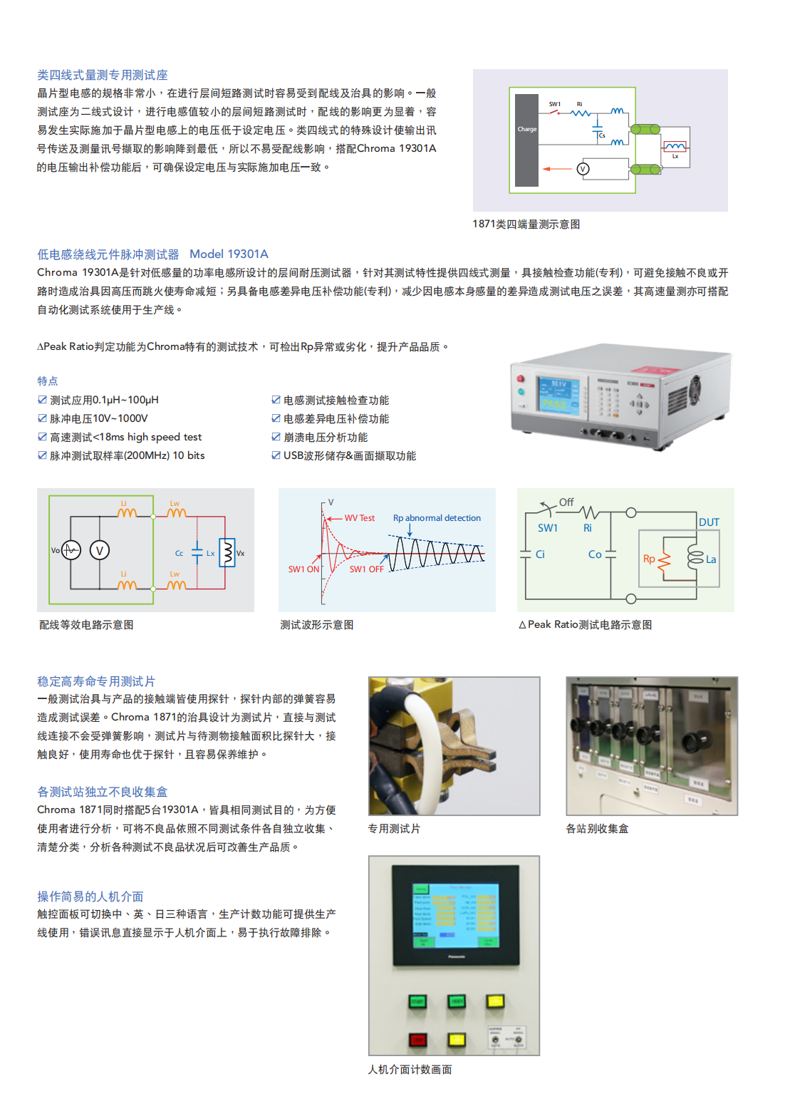Chroma 1871是专门为晶片型电感所设计的自动化测试生产设备,特别针对层间短路测试而设计,满足客户端大量生产需求。